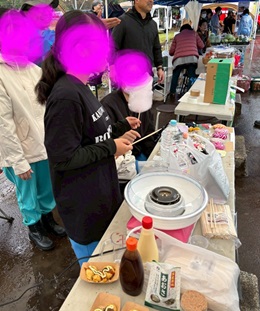 今回の出し物は、募金活動、自分たちでつくって小物の販売、たこ焼きとわたあめの無料配布です。