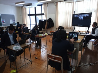 2月17日(月)5.6校時の1年次卒業研究Ⅰでは、カタリバ第3回合同授業を行いました。今回は、島根県立浜田商業高等学校と熊本県立天草拓心高等学校本渡校舎との合同授業でした。自分の興味関心事を掘り下げて、将来の進路希望に結びつける工夫をして各自探究しました。生徒たちからは、「発表には少し緊張したが、県外からの生徒やサポーターからさまざまなアドバイスをもらえてうれしい」「同じ分科会の生徒たちと仲良くなれた」「毎回違う学校との交流で視野も広がった」などといった声がありました。